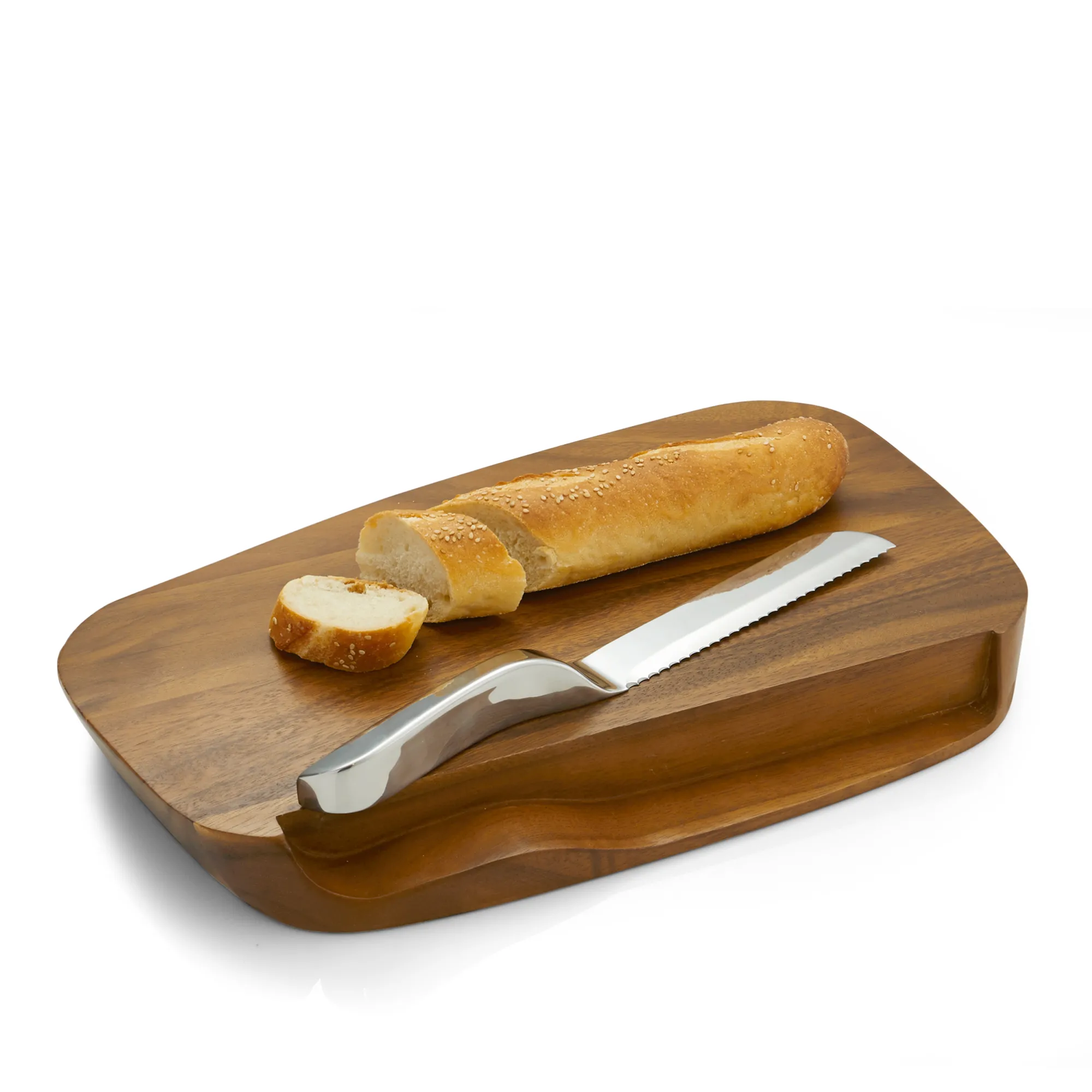 The Blend Bread Board With Knife Enables Fresh Breads To Be Cut And Served Tableside And Kept Handy Throughout The Meal. Perfectly Sized For The Dinner Table, The Serrated Bread Knife Fits Right Into The Side Of The Board When Not In Use.