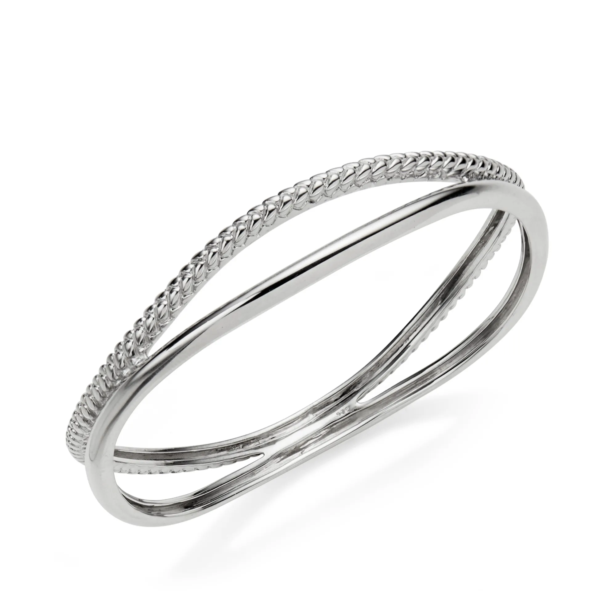 The Braid Bangle Bracelet Artfully Joins Two Curved Bangles, One With A Sophisticated Braid Detail That Adds An Irresistible Touch Of Style To The Design. Giving The Illusion Of A Stacked Set, The Braid Bangle Bracelet Is Perfect For Day Or Night.