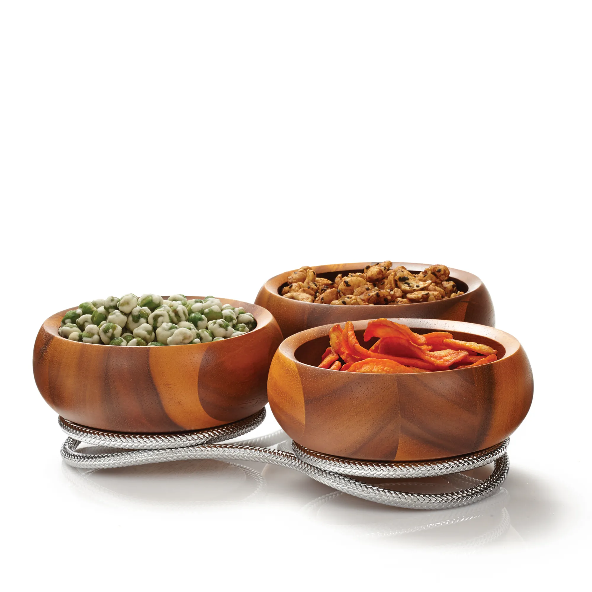 The Braid Condiment Server Features A Braid Detail Arranged In A Series Of Coils To Form A Base For A Trio Of Stunning Wood Bowls. Its A Polished And Playful Way To Keep The Coffee Or Dinner Table Looking Neat.