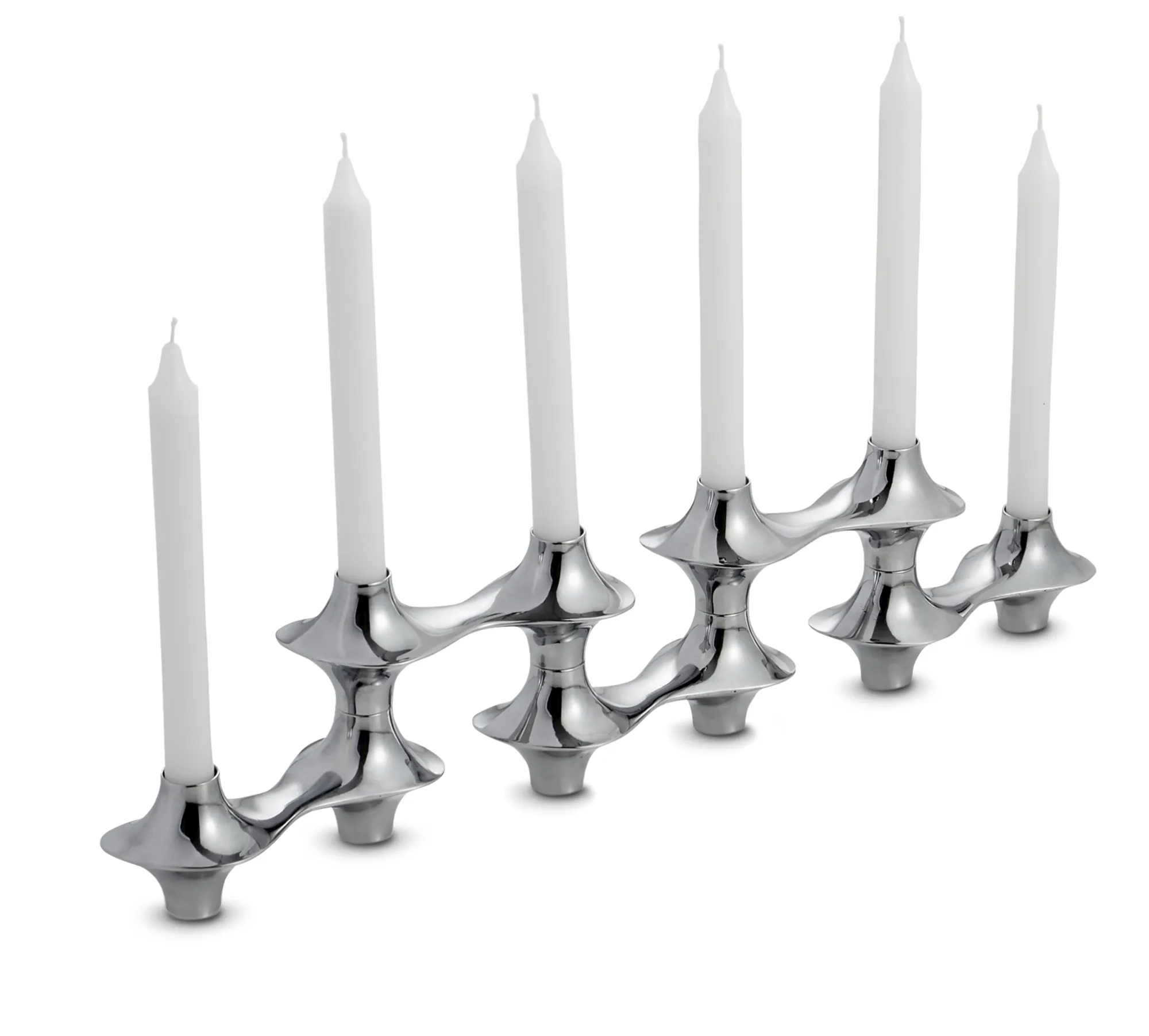 The Cortina Hinged Candelabra Is A Brilliant Example Of An Organic Piece That Adjusts To Fit Your Needs And Taste. It Can Be Extended To Its Full Length Or Bent To Create An Abstract Form As It Shows Off Six Taper Candles In Varying Heights For A Truly Stunning Display.