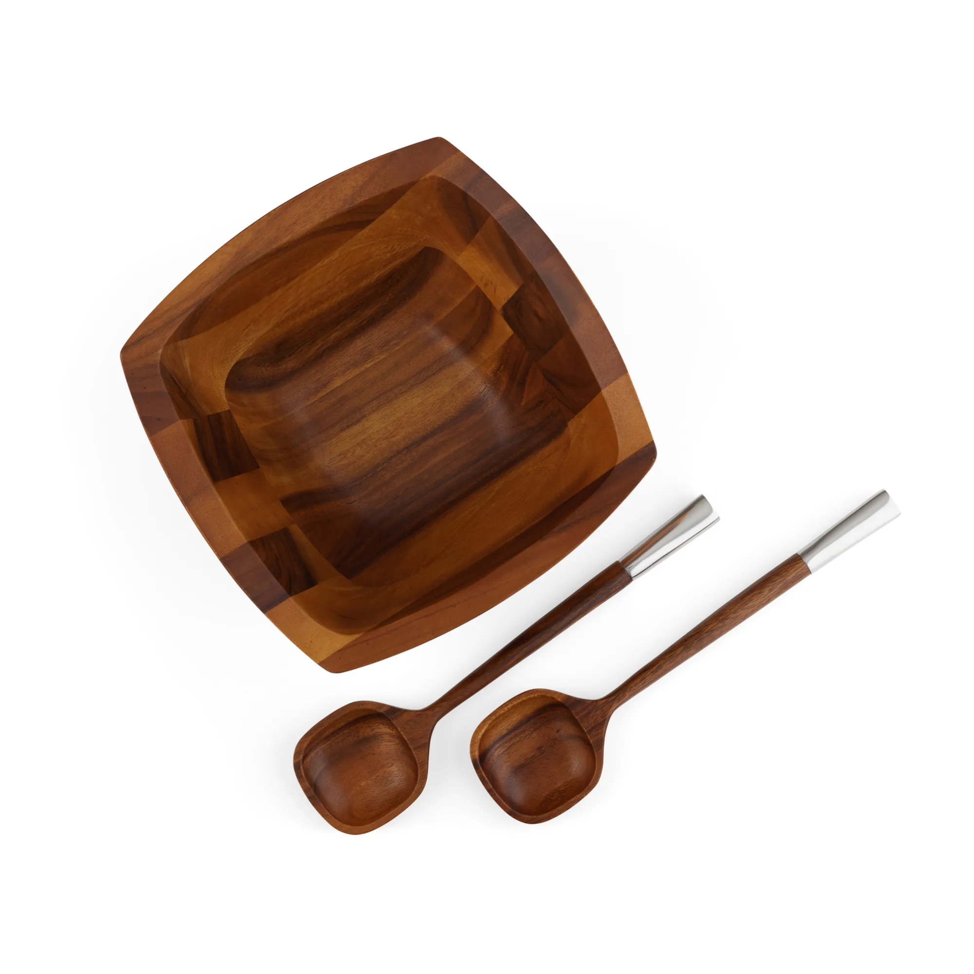 The Cube Salad Bowl Is A Modern Shape That Is Perfect For Serving Salads Of All Kinds. This Set Includes Wood Servers With Alloy Tips That Add Intrigue.