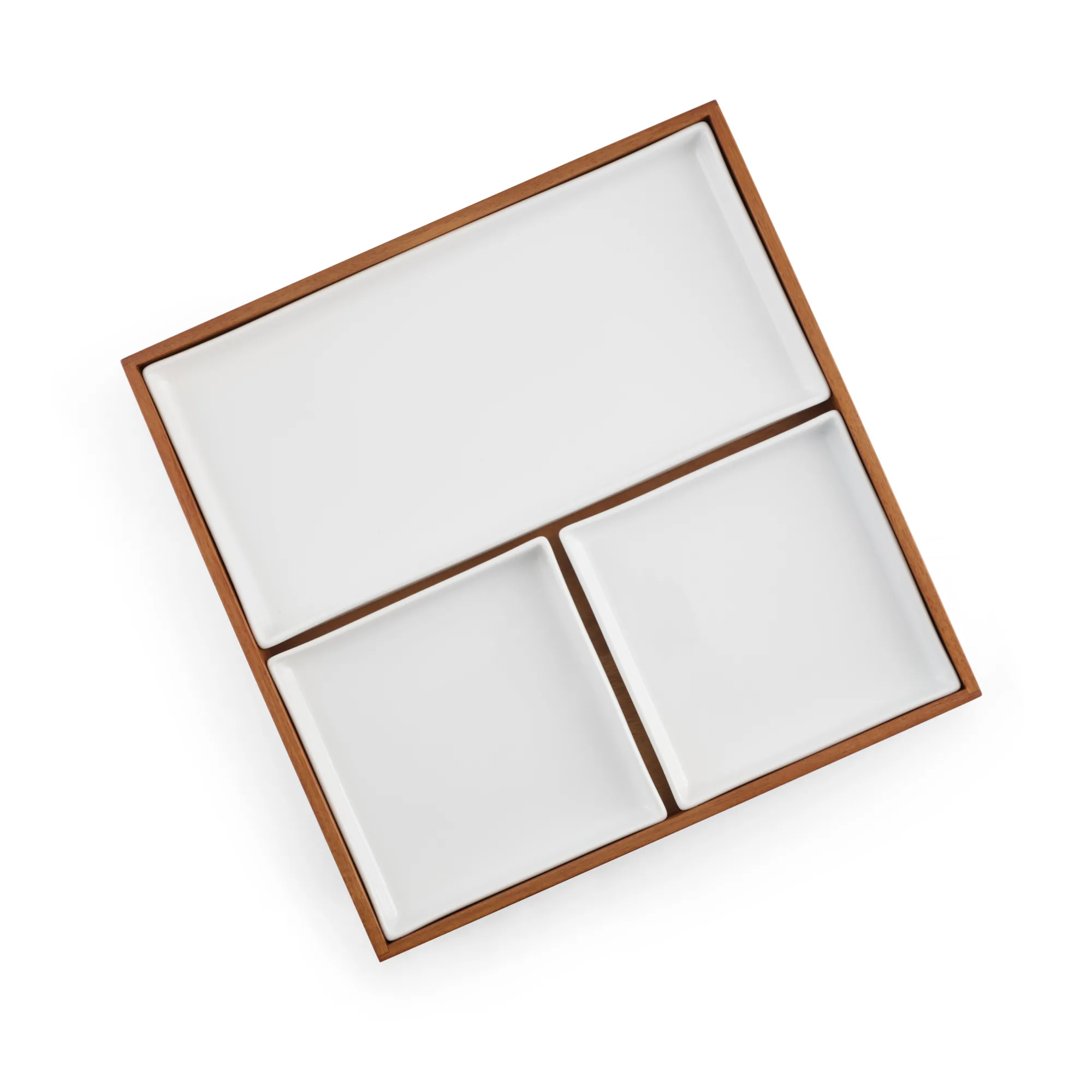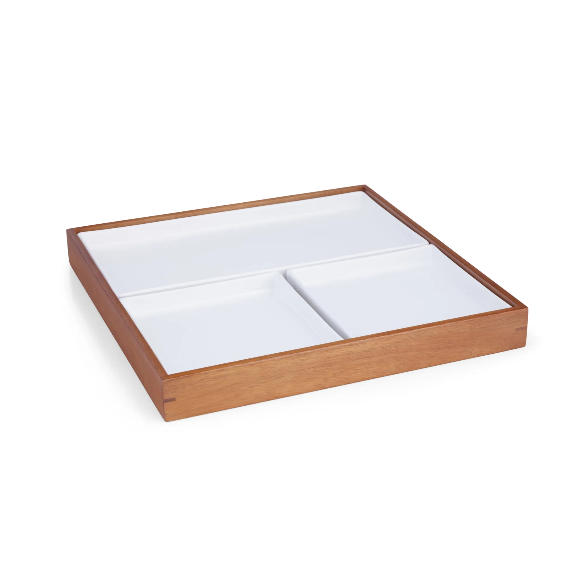 An Oversized And Sophisticated Take On A Classic Japanese Lunchtime Favorite. The Duets Bento Box Offers A Mixed Material Style, Marrying Warm Acacia Wood And Cool, White Porcelain. The Box Features Three Compartments, Keeping Food Organized And Separate, Each Made Of Porcelain.