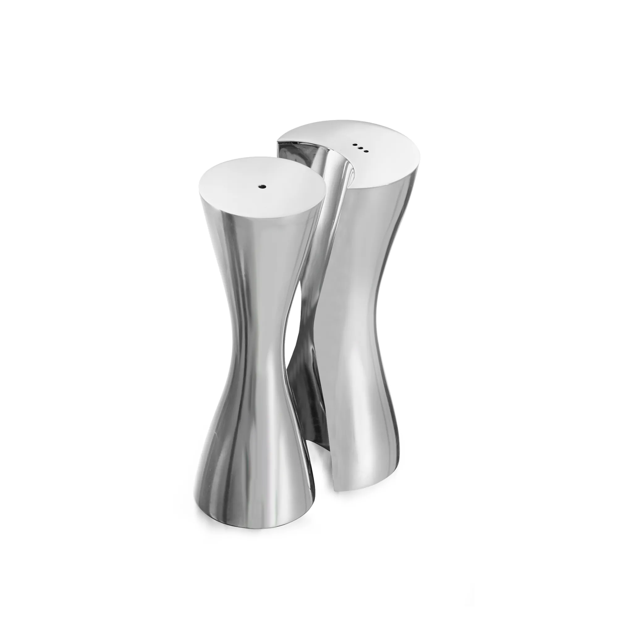The Two Pieces Of The Hourglass-Shaped Hug Salt & Pepper Shakers Fit Together In A Sweet Embrace, Making It Easy To Carry The Pair To The Table As If They Were One. Each Has A Differing Number Of Holes On Top And Black And White Plastic Plugs Underneath For Identification.