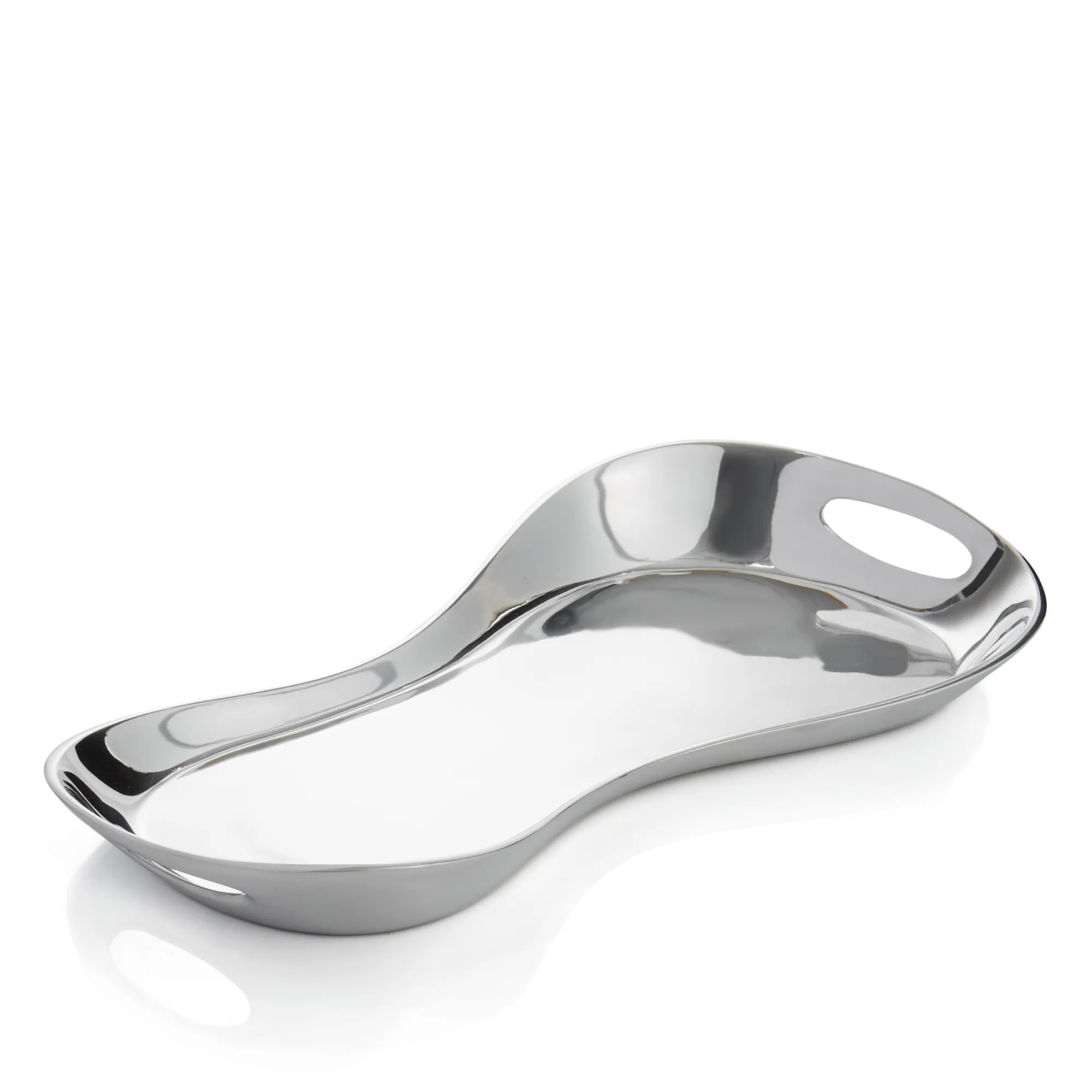 A Beautiful Piece, Full Of Curves, The Morphik Handled Tray Features A Slightly Raised Edge To Hold Contents On The Tray And Two Cut-Out Handles For Easy Transport. Made Of Nambe Alloy, The Tray Has Exceptional Temperature Retention Properties, Allowing It To Be Heated Or Chilled Prior To Use.