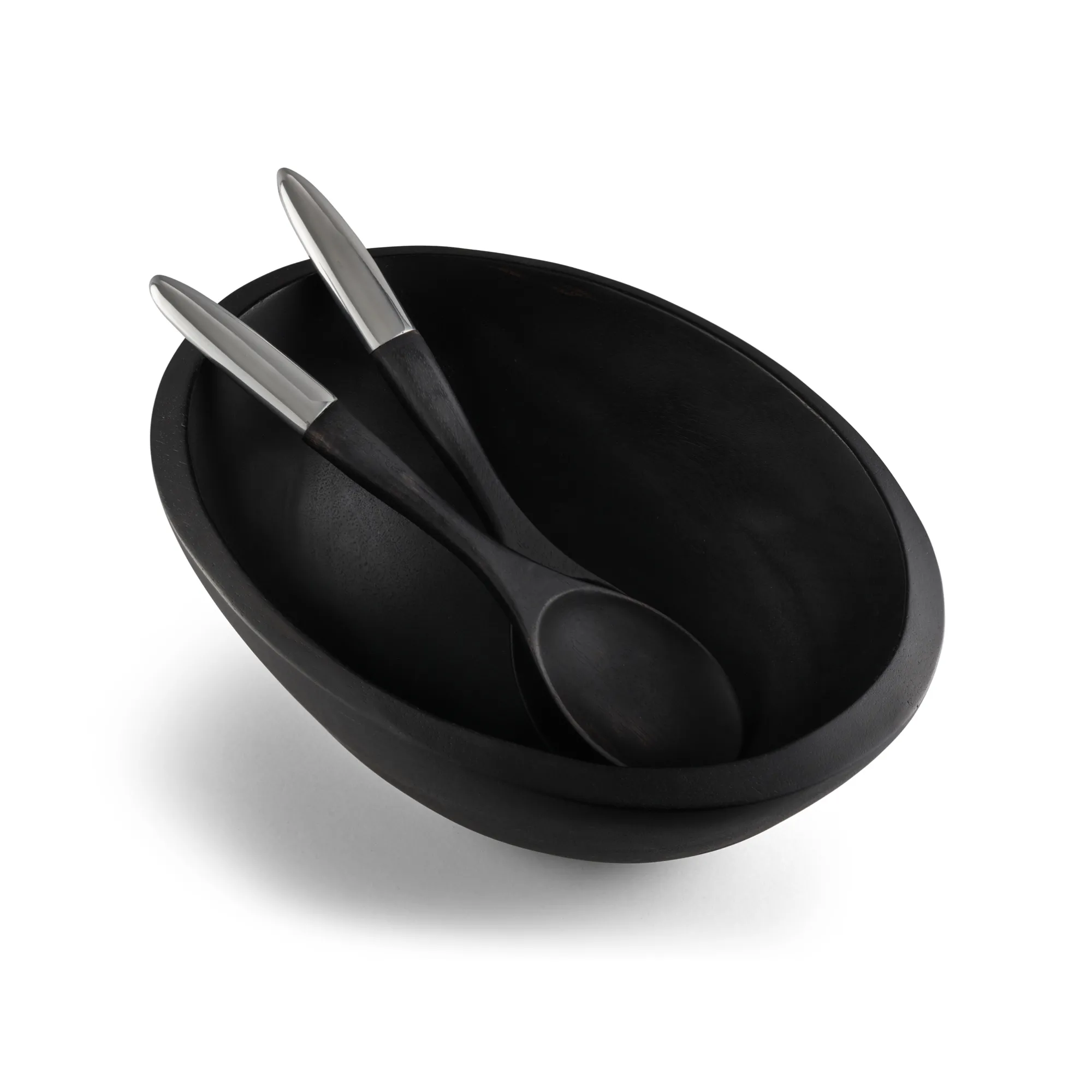 Appearing Near Black In Color, The Noir Collection Applies A Deep, Rich Stain To Its Wood Components, Offering A Contemporary Makeover To Nambe’S Signature Mix Of Acacia Wood And Alloy. Oval In Shape, The Noir Salad Bowl Is A Deep Vessel, Ideal For Mixing Your Favorite Greens. Included With The Bowl Is A Pair Of Wood Servers With Gleaming Alloy Accents That Add Shine And Contrast To The Dark Wood.