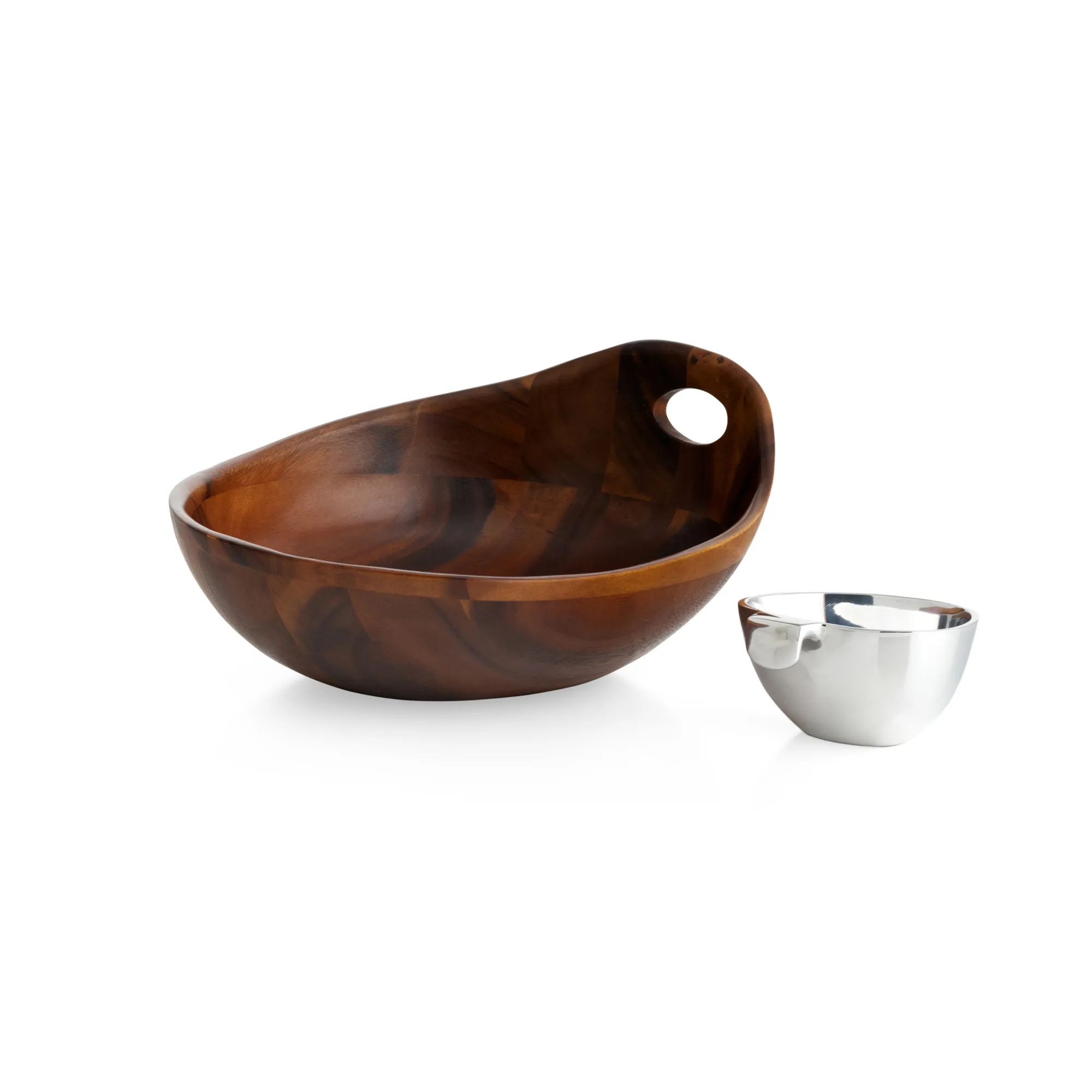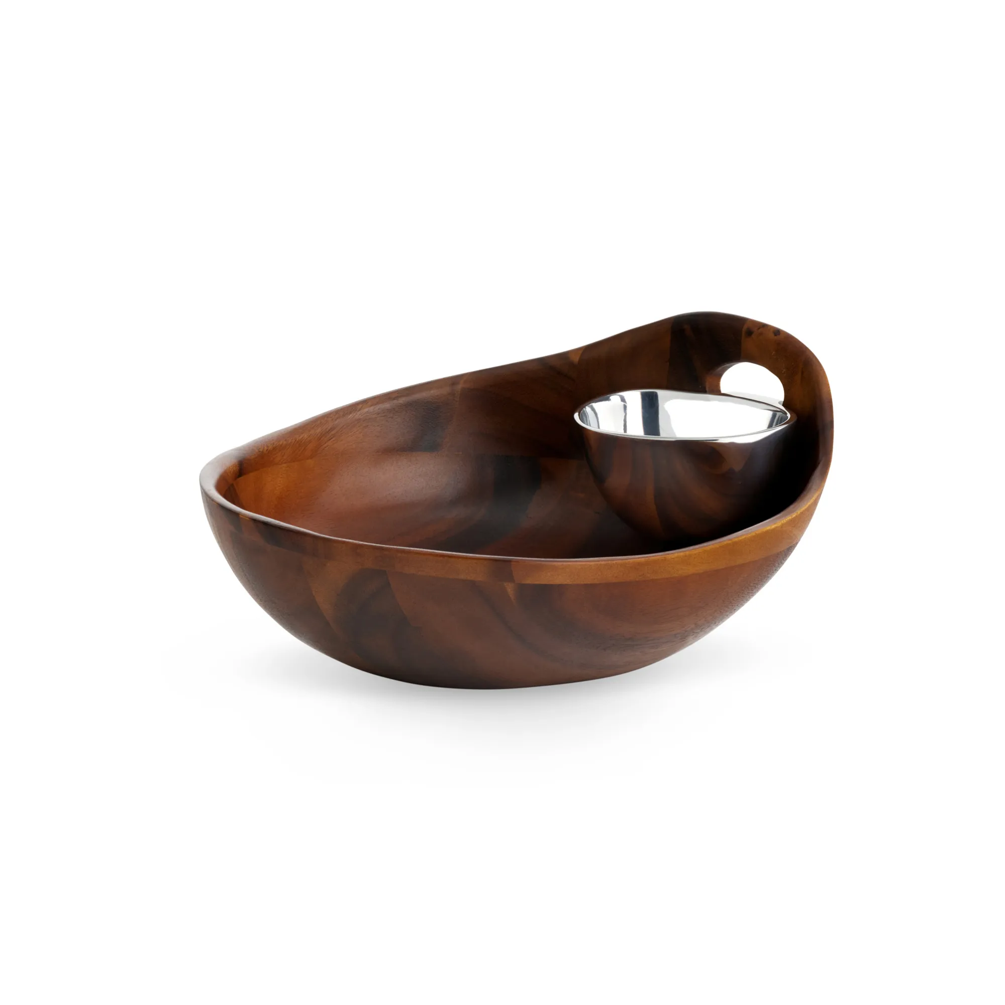 Portables Is Designed For Modern Day Life Where Home Is More Than A Place To Live, It Is A Place With Endless Spaces To Dine And Entertain. The Portables Chip & Dip Offers Visual Intrigue On The Table With Asymmetrical Sides. The Wooden Base Is Multi-Functional And Features An Open Handle To Facilitate Easy Serving And Transporting. Its Alloy Dip Bowl Is Removable And Can Be Heated Or Chilled Prior To Serving.