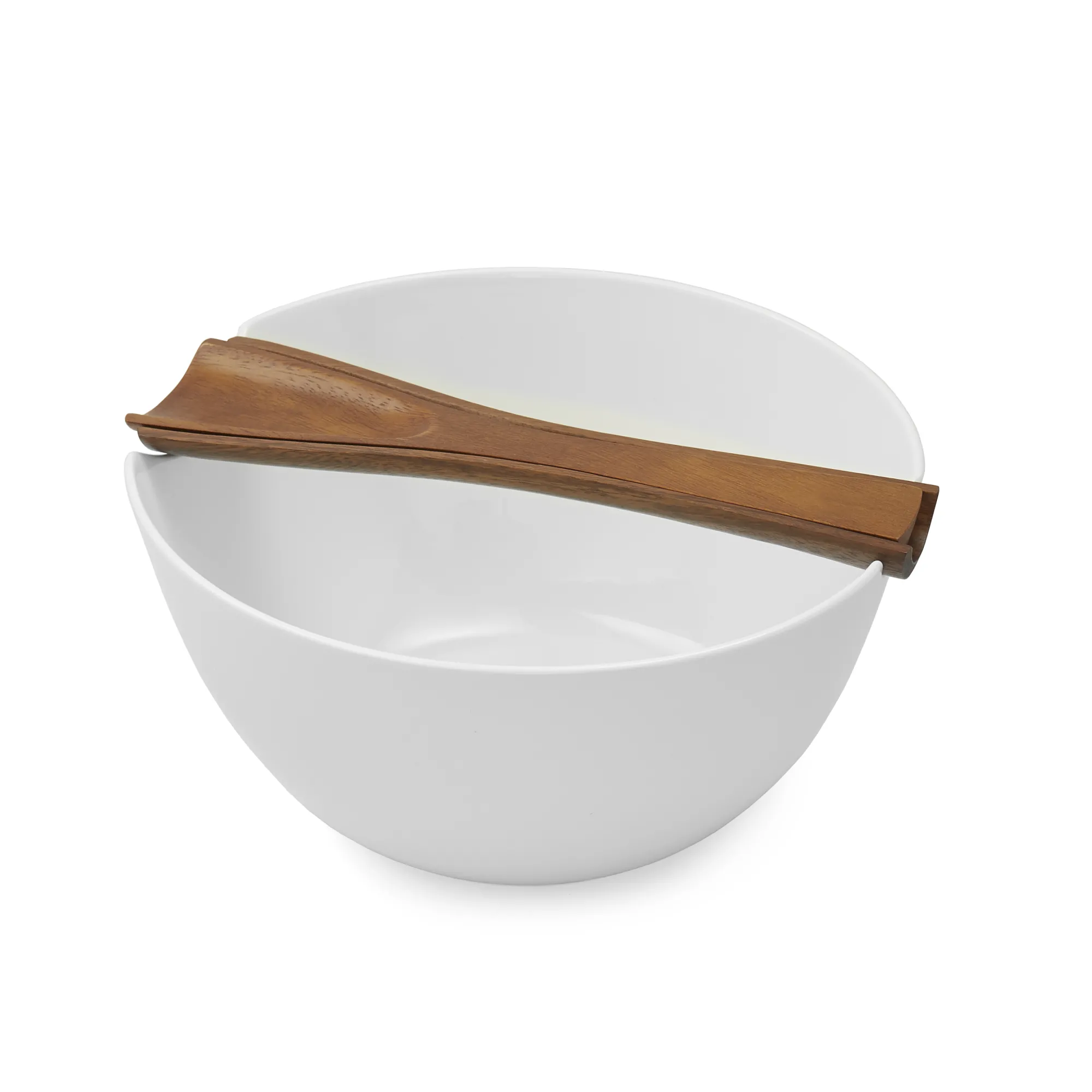 Classic In White, The Quatro Salad Bowl W/ Servers Is A Beautiful Combination Of Bone China And Acacia Wood. With Servers That Nest And Fit Seamlessly Into The Design Of The Generously-Sized Bowl, It Is A Piece You’Ll Turn To Again And Again, From Casual Weeknight Dinners To Gatherings With Friends And Family.
