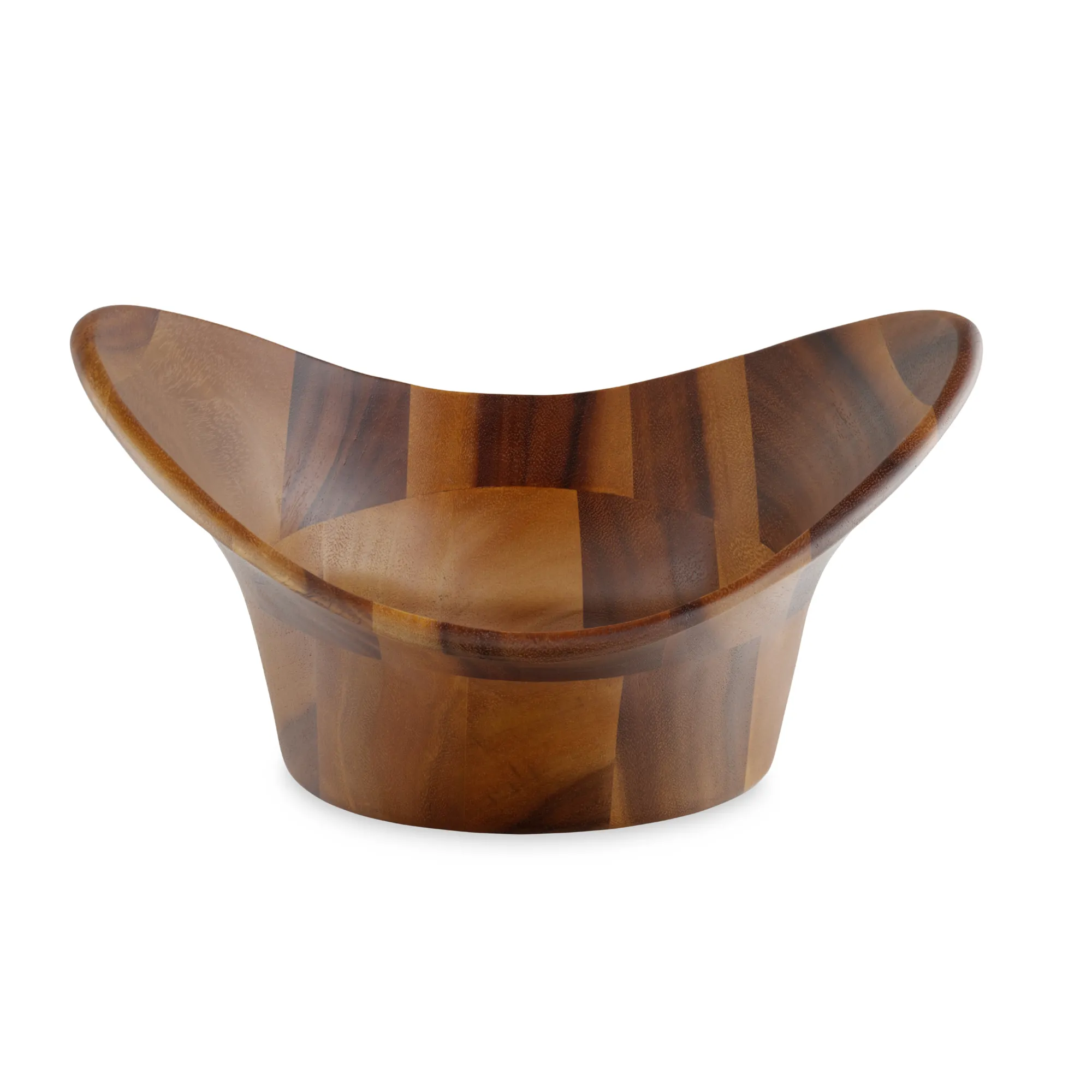 The Smooth Rise And Fall Of The Ripple Salad Bowl’S Organic Shape Mimic The Ripple Of The Tide As Its Sides Extend To Create A Deep, Oval Well To Toss A Salad. Made Of Beautiful Acacia Wood The Bowl Is Generously Sized And The Two Wood Servers Feature Gleaming Nambe Alloy Tips For An Added Shine.