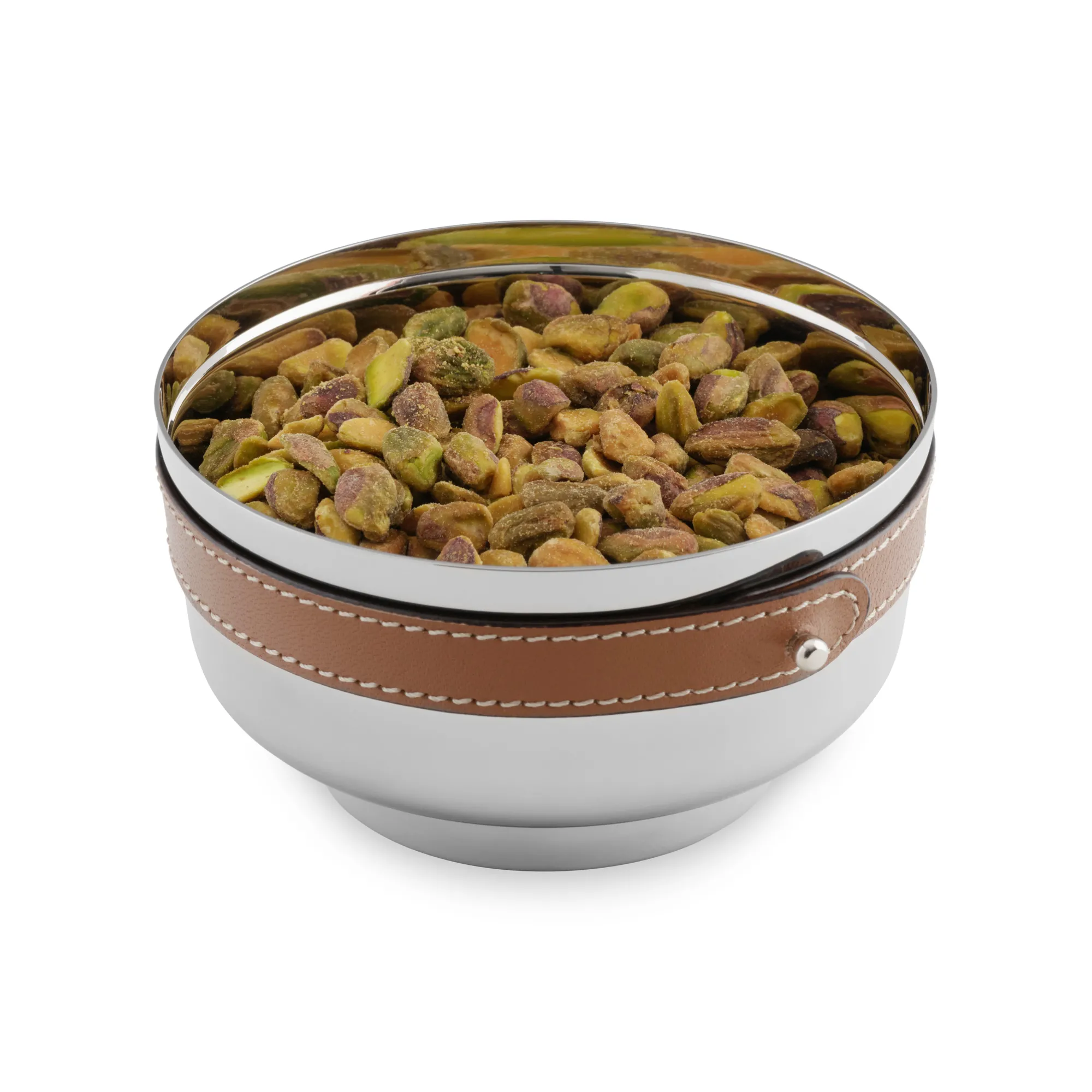 A Sleek And Modern Stainless Steel Barware Collection, Tahoe Blends High Shine And Rich Brown Leather For A Strikingly Refined Design. Serve, Nuts, Snacks And More In The Tahoe Nut Bowl, A Perfect Addition To Your Home Bar And Just The Right Size To Become An Entertaining Must-Have. The Leather Accent Is Removable For Easy Dishwasher Clean Up.