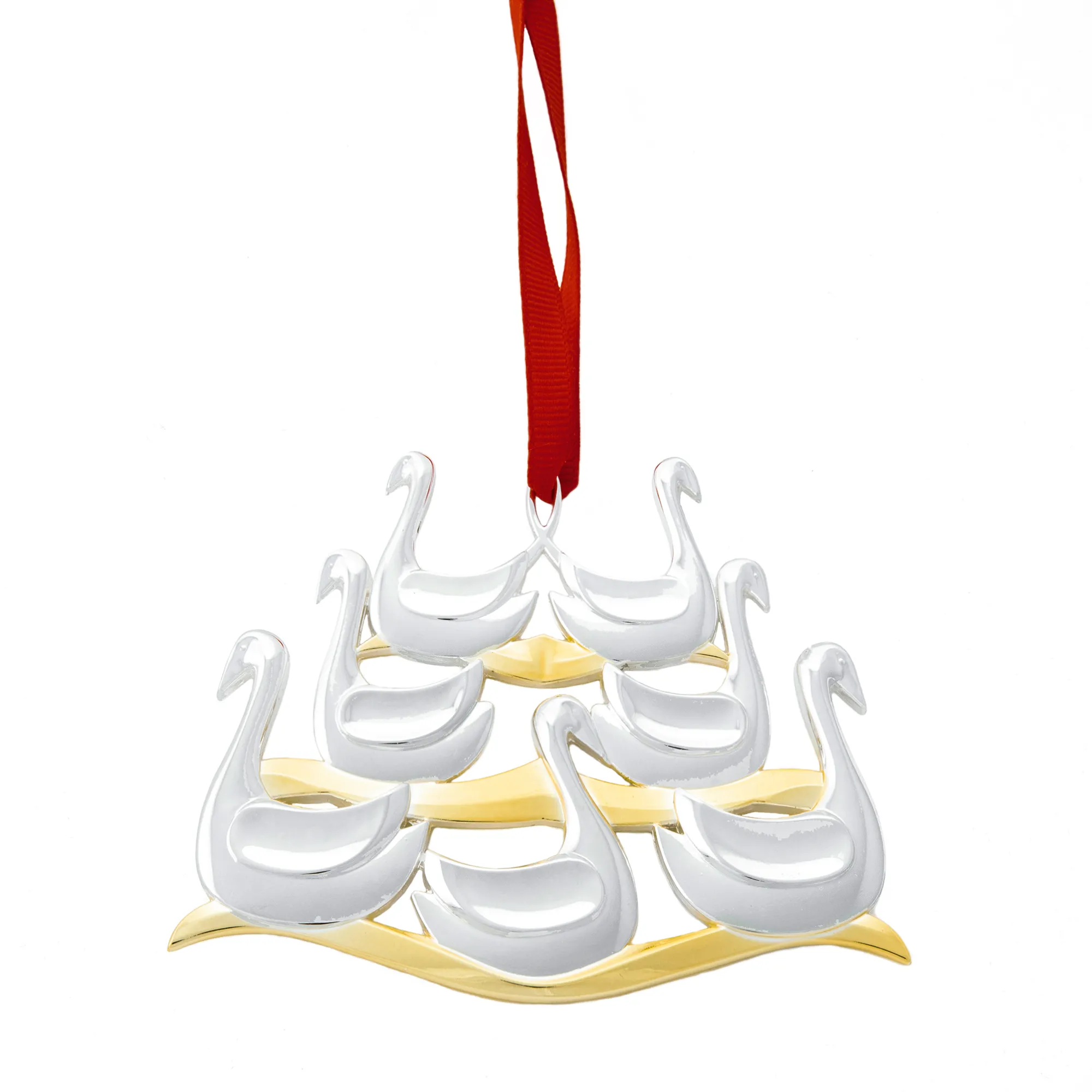 On The Seventh Day Of Christmas, The Swans Came A Swimming. Part Of The Twelve Days Of Christmas Ornament Series, This Ornament Depicts The Seven Swans A Swimming In Silver With Golden Touches In The Background.