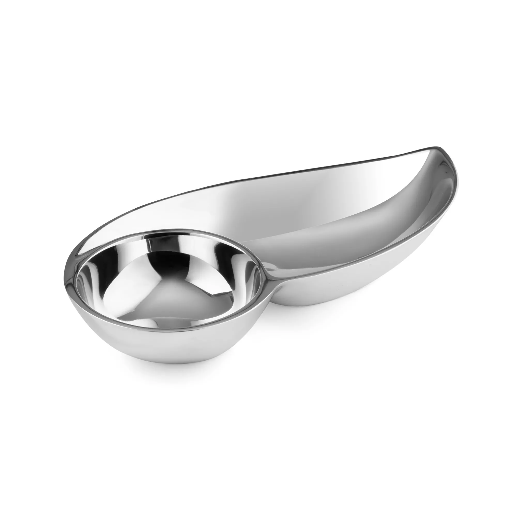 This Sleek Nambe Exclusive Is The Perfect Entertaining Accessory. With A Compartment For Dip And A Larger Section For Chips And Or Snacks, The Wing Chip And Dip Comes To An Artful Point Making This Piece A True Style Standout.